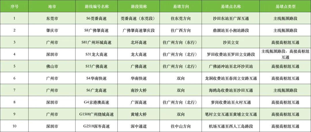 ◼︎繁忙高速路段10处