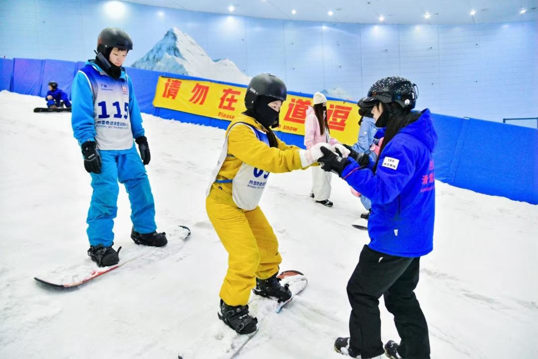 活动期间,广州热雪奇迹“冰雪第一课”每日同步开放,为青少年免费提供基础滑雪教学,专业教练将从雪具使用、基础滑行姿势等入门内容入手,打消滑雪小白的入门顾虑。针对亲子群体,2月1日、2月8日两天,各邀请50组亲子家庭参与免费教学,让家长与孩子携手体验滑雪乐趣,在互动中传递冰雪运动的快乐,助力培育家庭冰雪运动氛围。另外,2月4日还将开放明星教练教学课,为有进阶需求的青少年提供专业指导,助力提升滑雪技能。