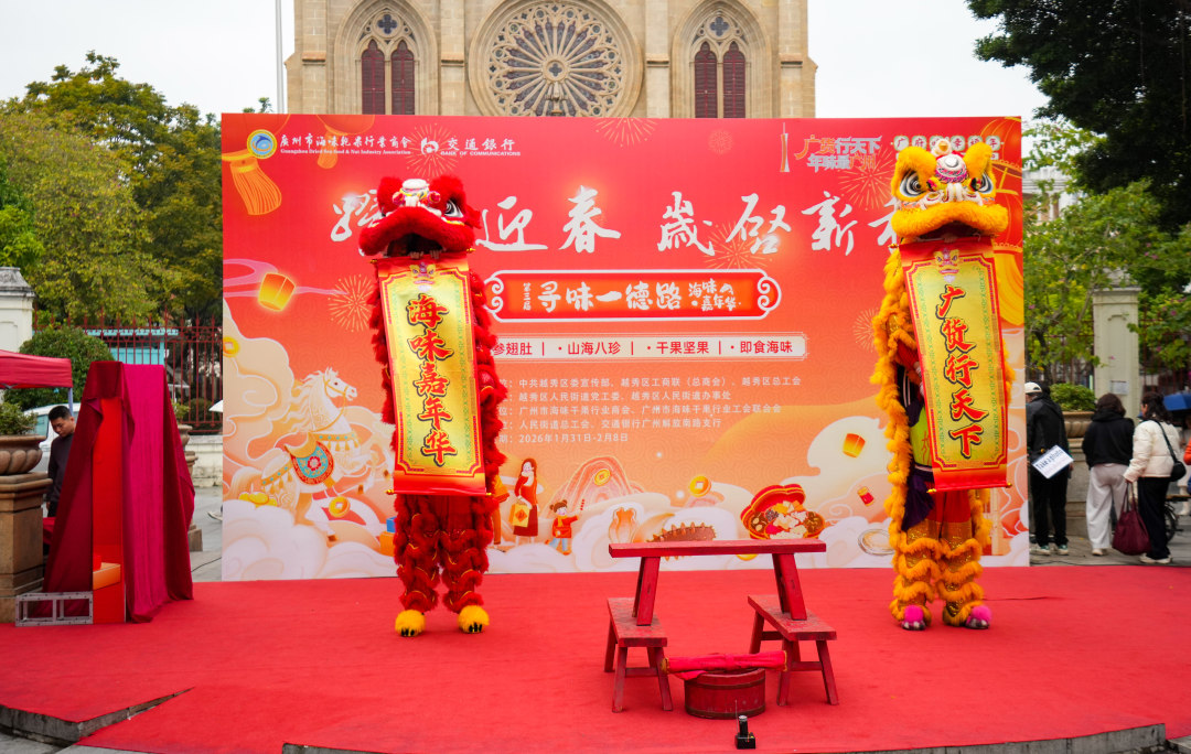 上午10时,伴随着铿锵激昂的鼓乐,热闹的醒狮表演精彩亮相,“海味嘉年华,广货行天下”的主题口号响彻全场,正式拉开活动序幕。越秀区人民街道相关负责人介绍,一德路作为百年海味商贸街区、“广货”展销的重要窗口,正乘着“广货行天下”的东风,从传统集散地向品牌化、国际化转型迈进。本次活动不仅是一场年货展销,更是一次文化传承与产业振兴的生动实践,希望市民游客在浓郁年味中,感受广州千年商都的商业活力与海味文化的独特魅力。
