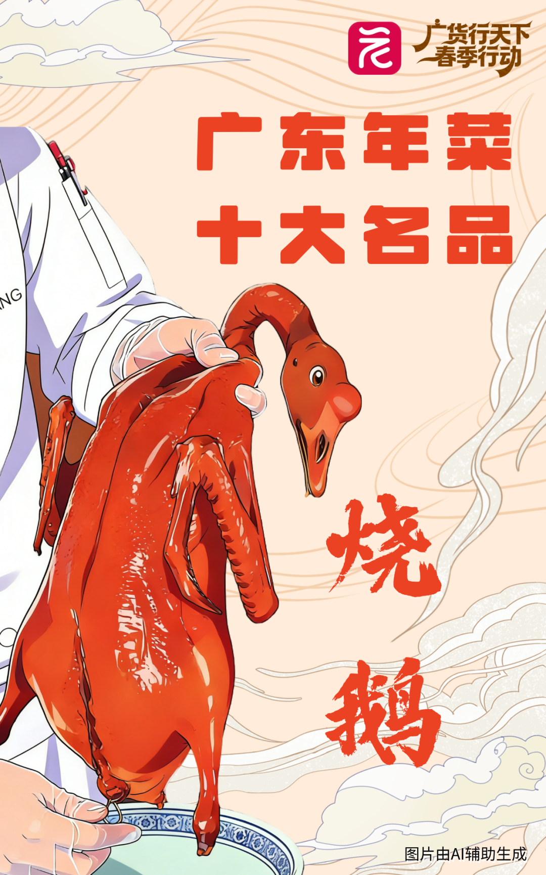 烧鹅,皮脆肉嫩的广式烧鹅是粤菜代表,色泽红亮,象征红红火火。东莞烧鹅尤为出名。