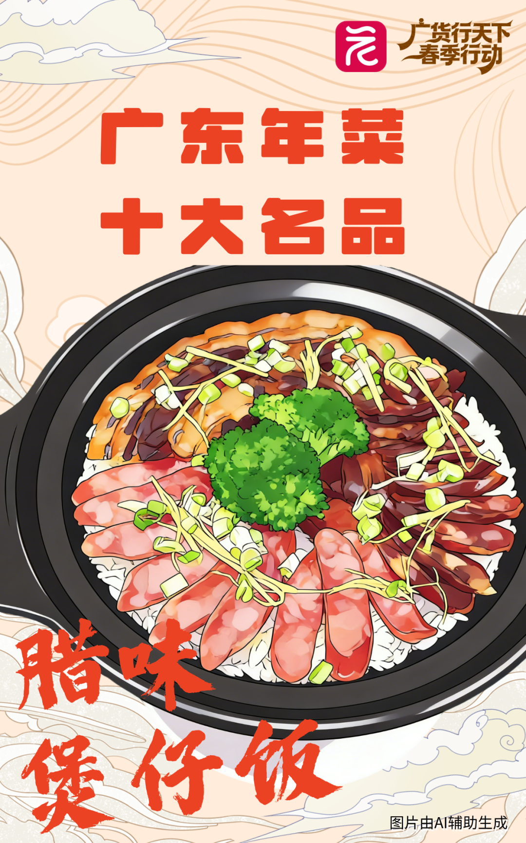 腊味煲仔饭,广式腊肠占国内腊肠市场60%以上,腊味象征家业兴旺。煲仔饭将腊味与米饭完美结合,香气四溢。
