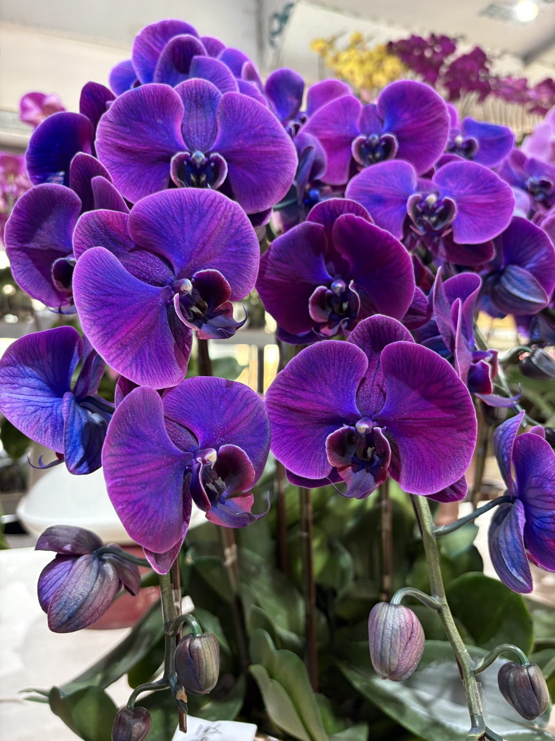 记者观察到,各花档花卉更突出特色、精品,更讲究审美和情绪价值,更注重线下、线上同步销售。以蝴蝶兰为例,市场内主营蝴蝶兰的花档较多,各档口纷纷在品种、造型上下功夫,更贴近年轻人的需求,蝴蝶兰的色彩更清新、更独特,造型更加现代、时髦。“往年,马卡龙(一种蝴蝶兰品种)是粉蓝色的,今年我们推出深紫色马卡龙,尽管单枝价格高达六七十元,依旧很受欢迎。”满天红园艺店一位工作人员表示,对于有意向购花的顾客,他们也会提供微信二维码,方便线上下单。