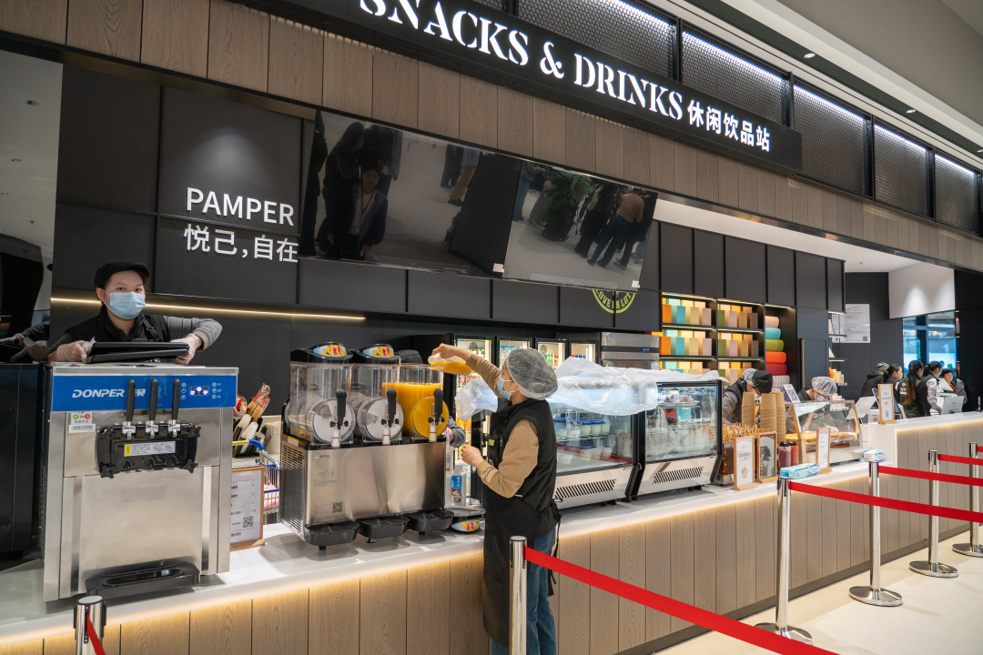 周健还介绍,除了硬件升级,服务细节也进行了升级:设置休息区,提供直饮水、免费取冰、微波炉加热,实行当日现制熟食日清制度,果切严格执行“4小时8折、6小时6折、8小时销毁”的鲜度承诺……“这次调改不是为了‘看起来新’,而是要让顾客真正感受到‘买得值、逛得爽、用得放心’。即日起,门店营业时间调整为每日9:30至21:30。”她说。