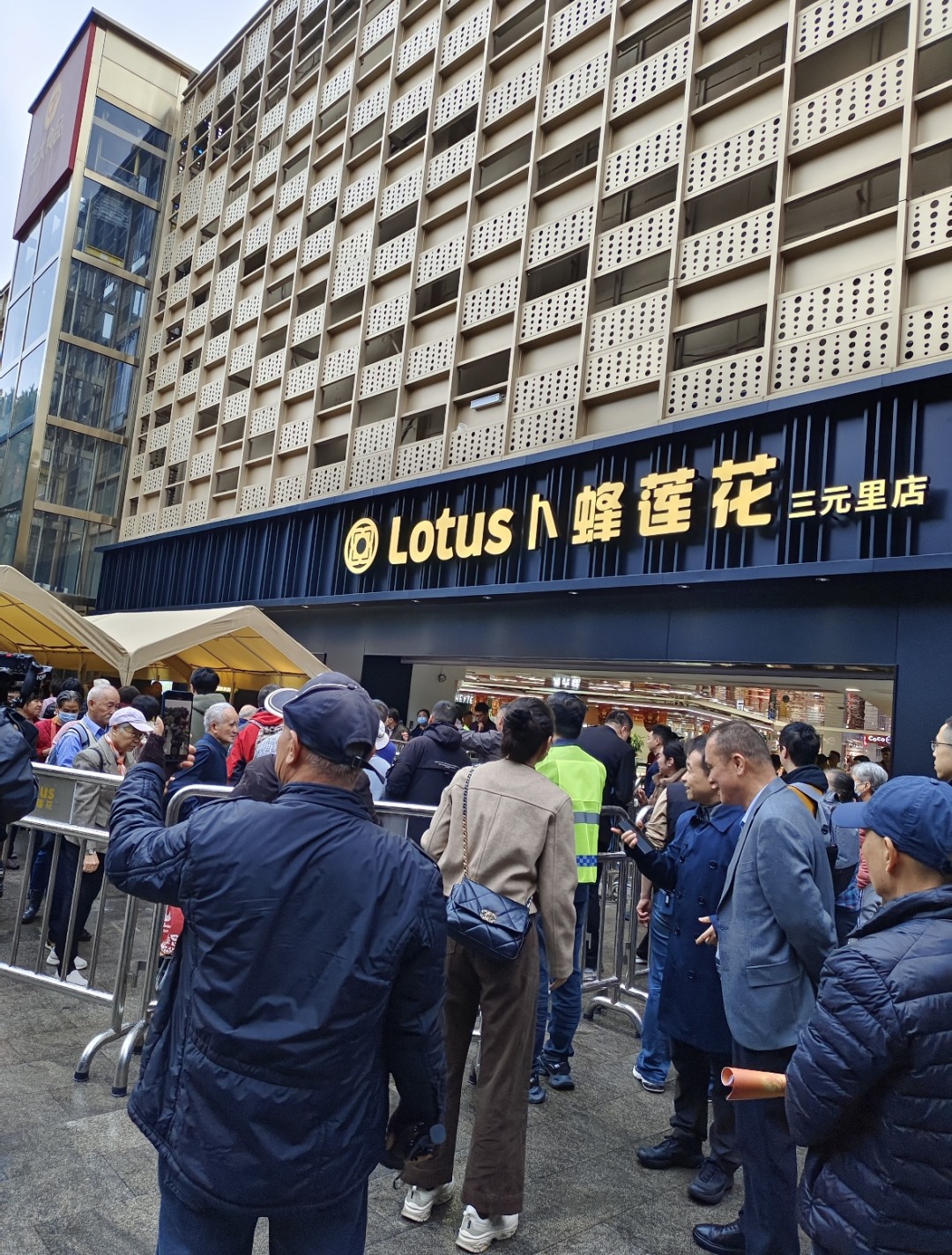 当天早上,卜蜂莲花三元里店门口早已排起长队。9点30分,卷闸门缓缓升起,等候多时的街坊鱼贯而入。一进门,“金蜂耀”主色调扑面而来,蜂窝六边形元素贯穿空间设计,LED巨幕吸引眼球,开阔通透的购物动线,琳琅满目、整整齐齐的商品陈列,给了熟悉这家老店的街坊耳目一新的感觉。