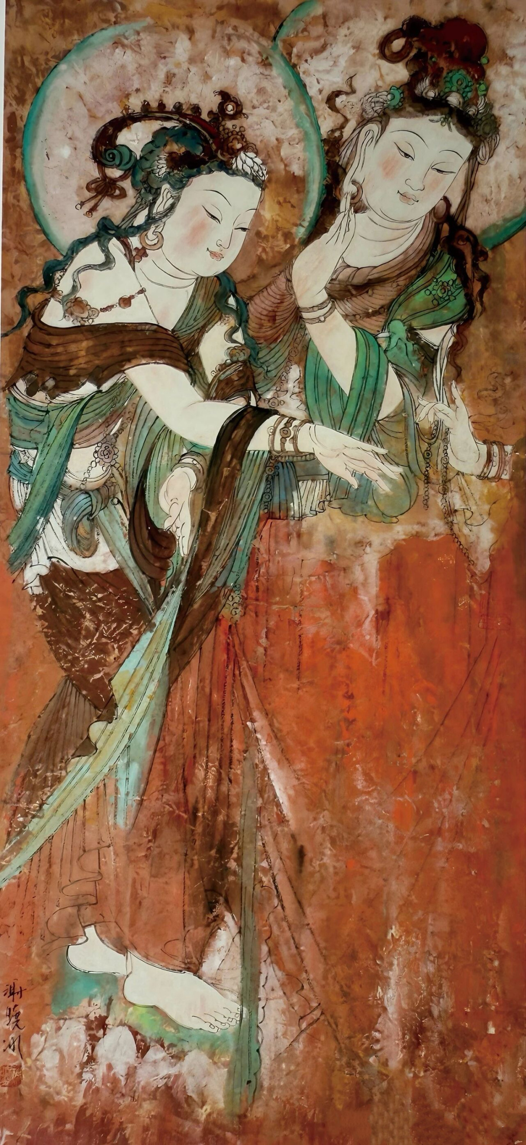 展览以时间为脉络,清晰划分出三个发展阶段:早期艺术家在传统画学教育基础上,邂逅敦煌壁画后开启了对传统中国画的改良与革新;中期学院式教育阶段,艺术家们将敦煌壁画的材料与技法融入现代教学体系;至当代,岭南艺术家形成文化自觉,结合个人艺术追求,对敦煌艺术展开多元化借鉴,实现了敦煌文化与岭南文化在新时代的深度对话与视觉转化。