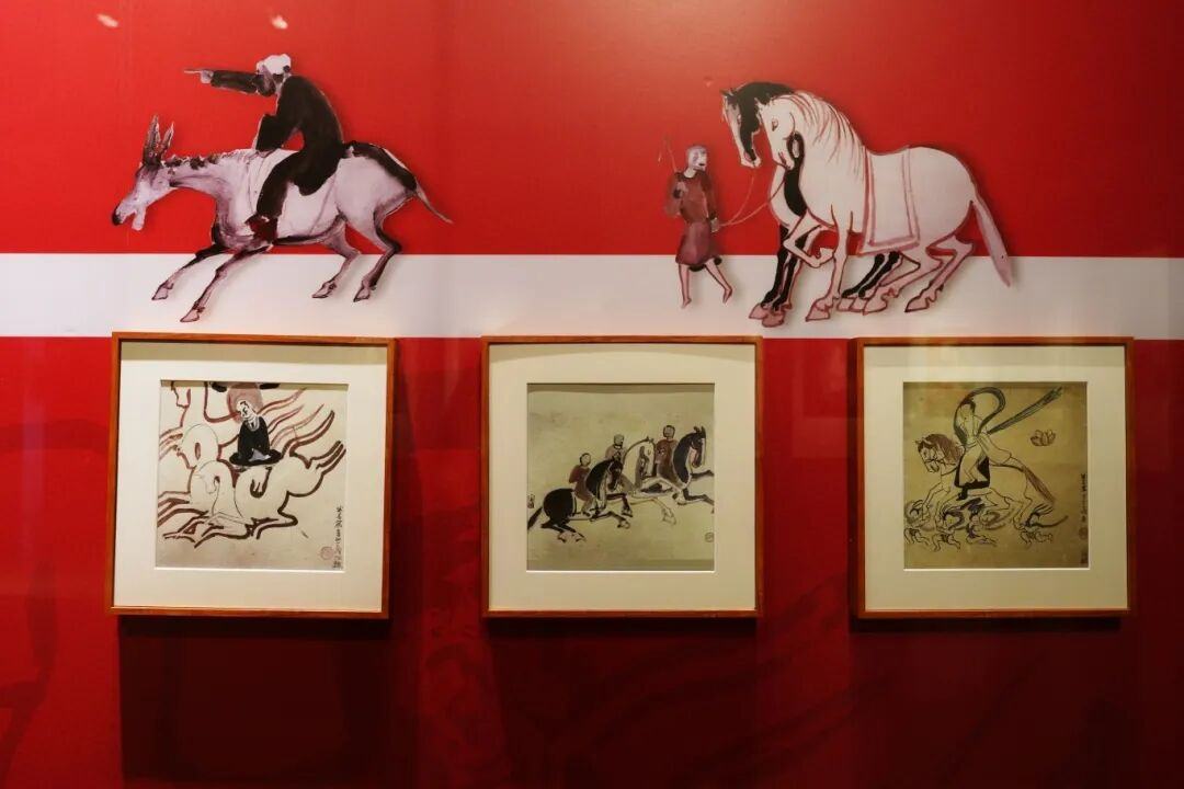 尤为值得一提的是,为迎接2026丙午马年,本次展览以“骏马”为线索,系统梳理了敦煌艺术宝库中形态丰富的骏马形象,并同时呈现岭南画坛诸位名家笔下对马造型的多元探索。展览内容与马年主题紧密呼应,展厅多处融入马元素,包括敦煌壁画上的马题材和岭南名家笔下的骏马形象。