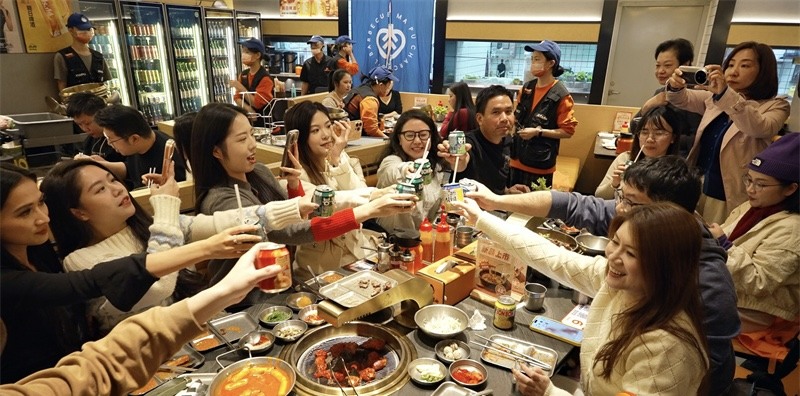 市民在远景路韩国风情街品尝烤肉。
