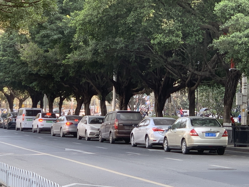 在大沙东路上,机动车占道违停现象随处可见,其中以黄埔海关对出路段、文冲安置房四期对出路段、文冲幸福商业中心及广州航海学院对出路段的情况最为严重。这些路段原本为双向三车道,但因违停车辆占用一侧一条车道,仅剩双向两车道可供通行,导致通行效率下降。部分车主随意将车停在路边,关门后便径直离开,毫不顾忌可能因违停受罚或妨碍其他车辆正常通行。早晚高峰期间,上述路段经常发生拥堵。更令人担忧的是,由于违停车辆占道,途经车辆不得不紧急变道避让,存在交通事故隐患。