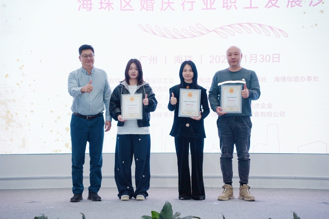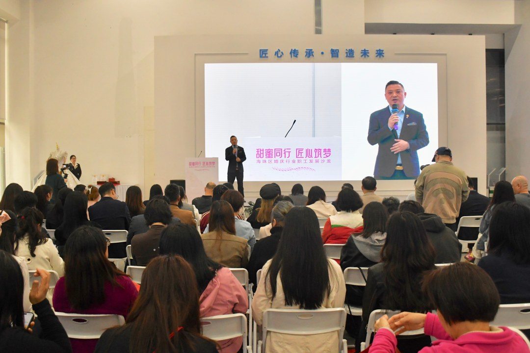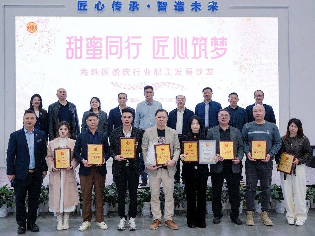 为精准服务婚庆行业职工成长需求,助力海珠婚庆产业高质量发展,1月30日,海珠区总工会、区民政局、海幢街道办事处、滨江街道办事处指导,海珠区婚庆行业工联会主办、心马策划(广州)有限公司承办的“甜蜜同行・匠心筑梦”职工发展沙龙在广州市第二工人文化宫成功举办。活动以政策解读、经验分享、荣誉表彰等形式搭建交流平台,凝聚政企合力,擦亮“广州幸福岛”品牌。