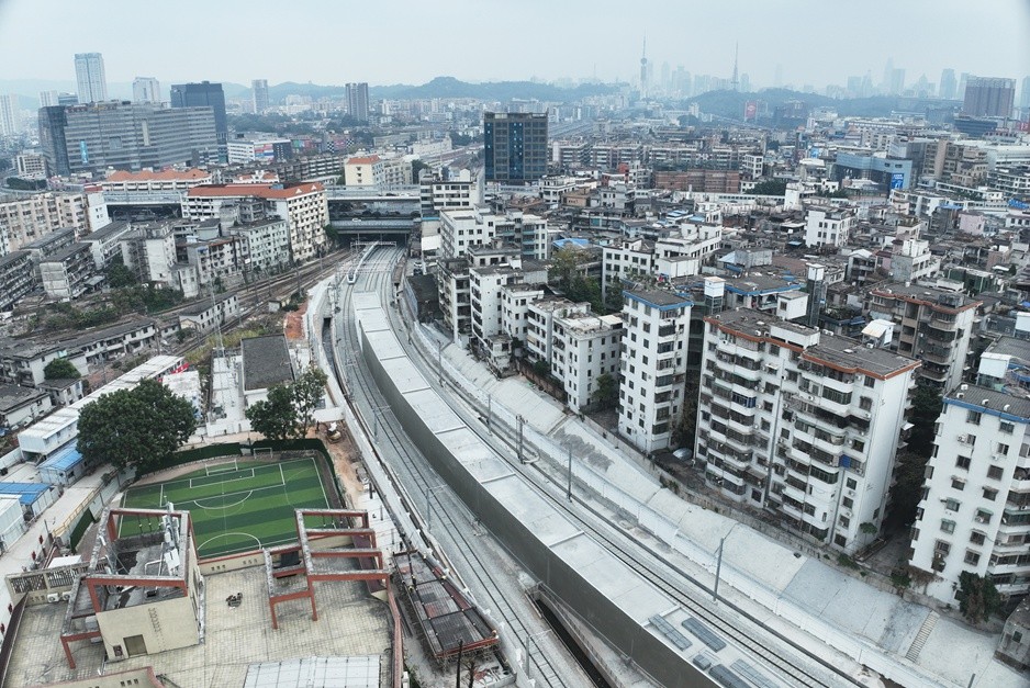 建设单位国铁广州局广州工程建设指挥部方面介绍,全长仅1.06公里的广湛高铁双线引入广州站工程,是贯通华南地区高铁网络关键枢纽的“最后一公里”,也是激活广州铁路枢纽整体效能的战略支点。这“临门一脚”的精准落地,让高铁直抵城市核心成为现实,为区域发展注入澎湃动能。