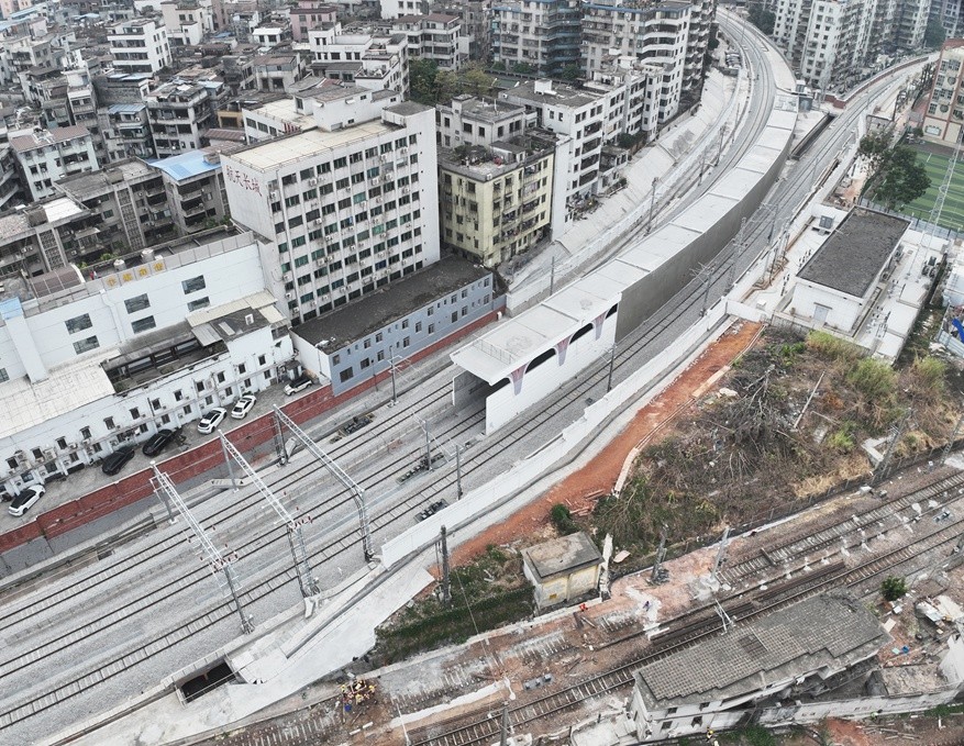 面对前所未有的挑战,广州工程建设指挥部锚定“安全、优质、高效”的建设目标,将技术创新与精细管理深度融合。参建单位中铁十二局等配强优势资源,优化施工组织设计,将施工计划精确到每日、每小时,实现多专业、多工序的无缝衔接与同步推进,最大限度降低对既有干线运输的影响。最终,这一重难点工程项目如期完成攻关,建成通车。