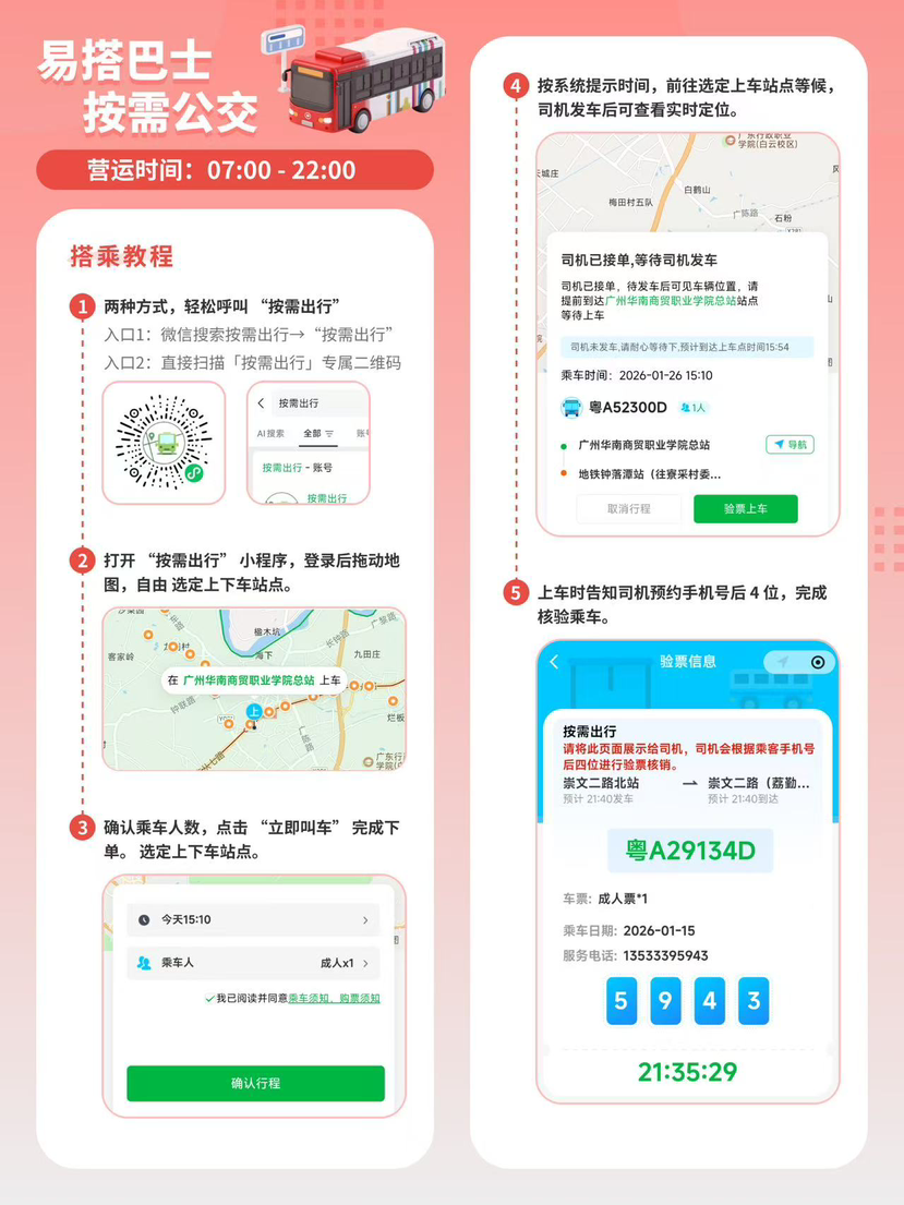 “易搭巴士”按需公交运营测试如同公交版的“网约车”,通过智能调度减少乘客候车时间,让公交出行更贴合每个人的生活节奏。这也是广州公交持续优化公共服务的一次暖心尝试。