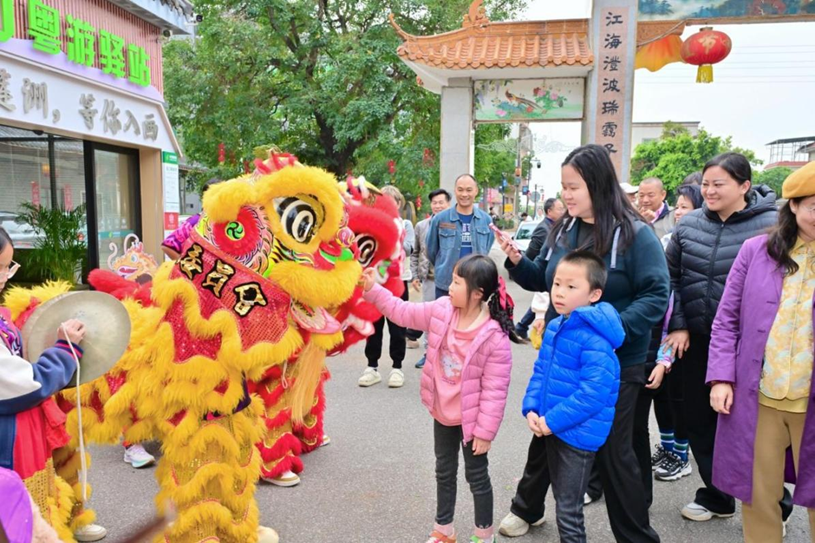 在拥有300年历史的莲江村,由村民组成的龙狮队与鱼灯队在村口舞起来,以传统方式热情欢迎澳门同胞。鱼灯巡游作为本地非遗项目,吸引了众多澳门同胞提灯参与,光影流转间,仿佛穿梭时光。