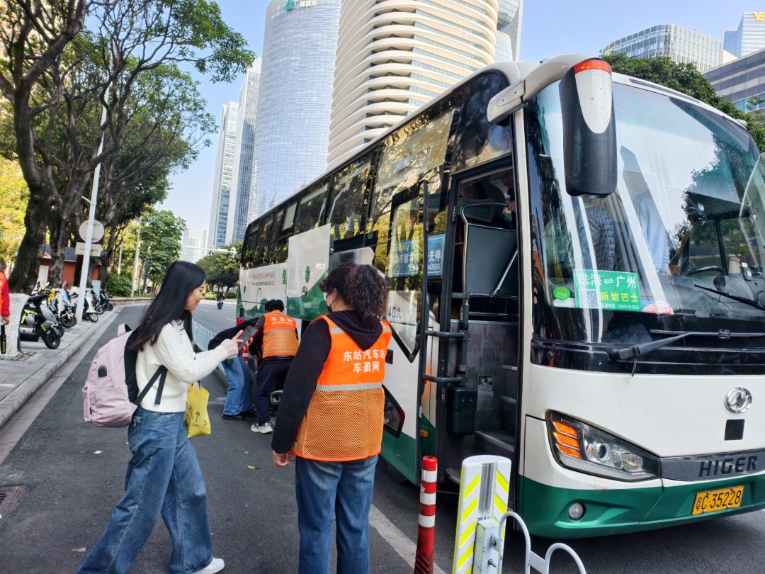 广州东站汽车客运站珠江新城停靠点,乘客在这里中转到珠三角各地。
