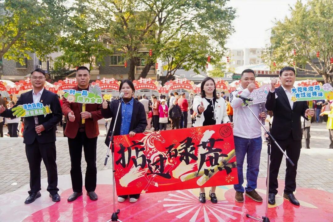 “我为马克村的果蔗代言!”活动伊始,一场别开生面的“出道”将气氛推向高潮。全镇24个村(社区)的干部代表组成“乡村振兴代言团”,轮流展示本村(社区)最具特色的农产品或文化符号,用亲切生动的语言为家乡“代言”并向群众拜年。