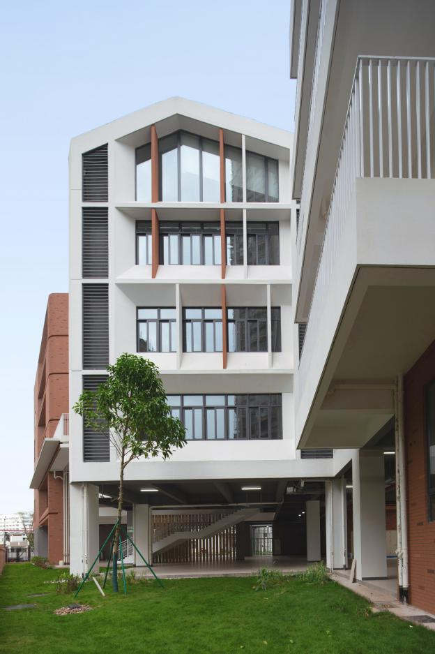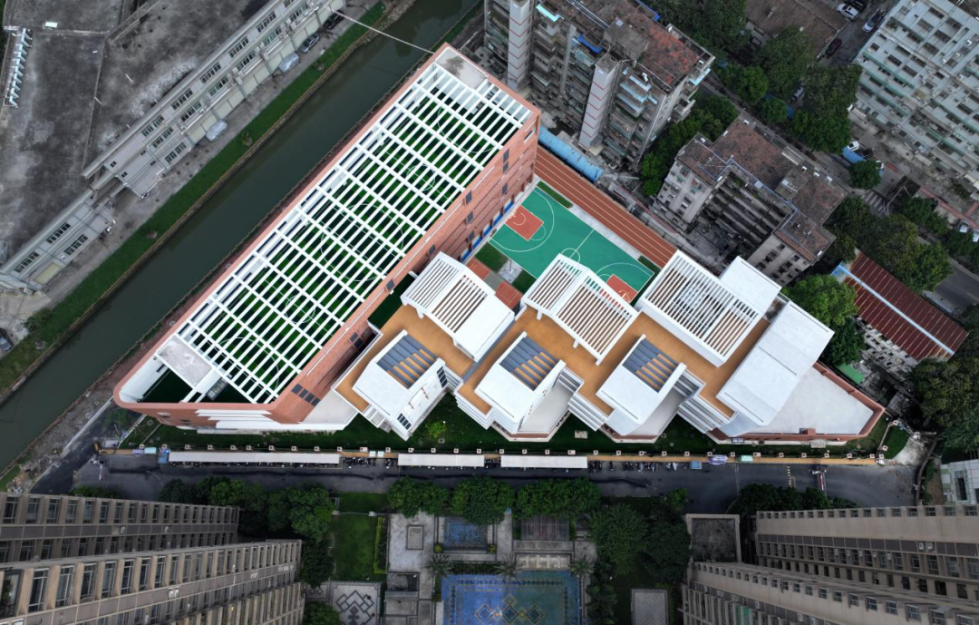 项目建成后将有效缓解茶滘片区学位紧张压力,有力提升老城区的教育供给品质。校园设计呈现了规划指导与岭南建筑设计理念的融合成果:北侧沿街的“骑楼式”灰色空间为家长提供了等候区;首层架空、屋顶花园与层层退台等设计,在高密度用地中创造了丰富多样的立体活动空间,充分适应岭南气候;整体建筑以通透的布局、轻巧的造型与明朗的色彩,打造出一座兼具现代教育功能与鲜明地域文化特色的高品质校园。