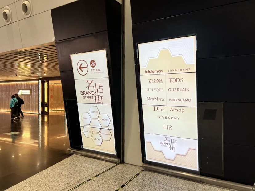 品牌标识突破传统平面排列,以立体布局环绕呈现,犹如一座微缩“品牌艺廊”。这种设计既在有限空间内营造出丰富的视觉纵深感,也让旅客可通过标识方位直观判断对应商铺位置,将旅客匆忙的出行节奏转化为从容惬意的探索体验,邂逅一场艺术之美的快乐。