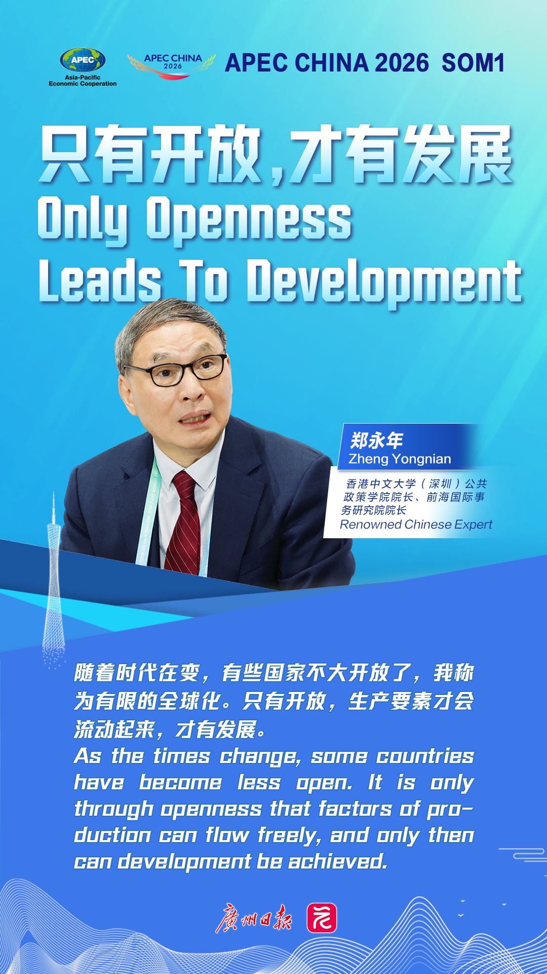 On February 2, during the First Senior Officials' Meeting and Related Meetings of APEC China 2026 in Guangzhou, Zheng Yongnian, a renowned Chinese expert, spoke highly of the APEC mechanism.