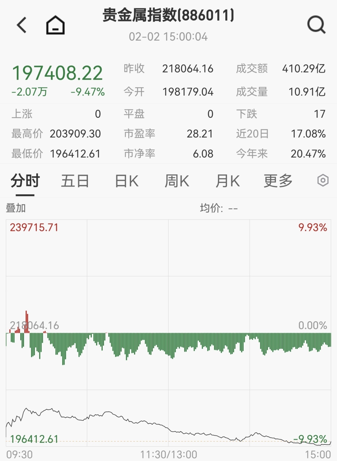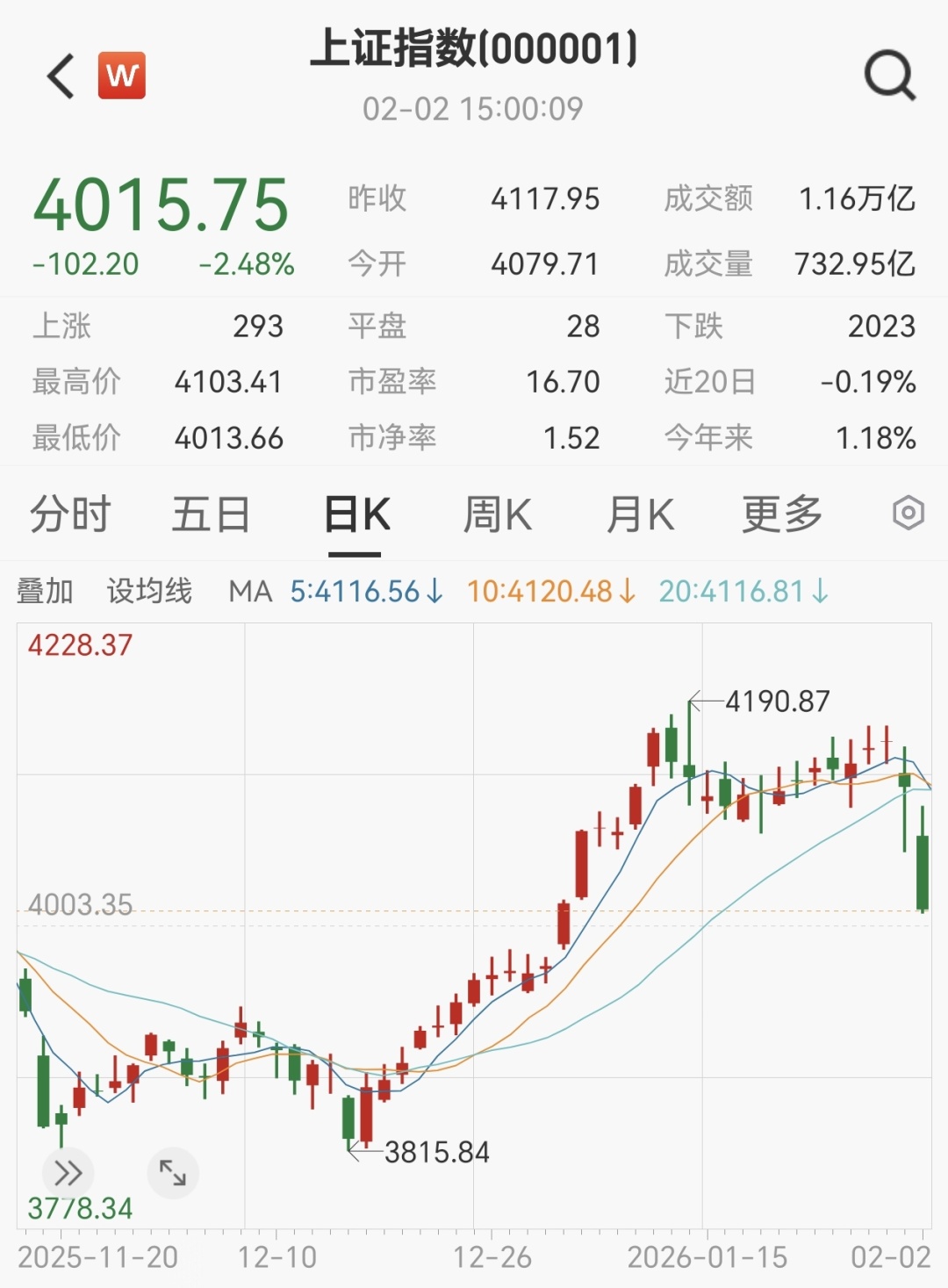 2月2日,A股三大指数均跌逾2%,沪指险守4000点,黄金、基本金属板块再现跌停潮,资源股全线下挫。