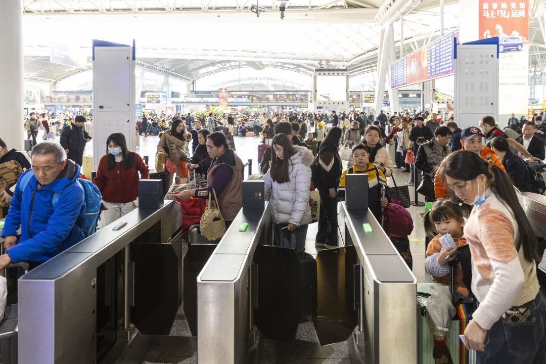 2月2日上午,记者在广州南站看到,客流较平时有所增多,乘客有序进站候车,整体平稳有序。