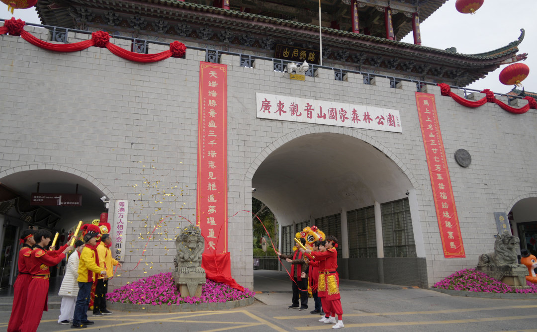楹联迎春,翰墨送福。2月1日,东莞观音山举行了马年春联颁奖暨揭联仪式,两副火红的春联,正式亮相观音山门楼与福缘门。锣鼓醒狮相伴,楹联名家们现场挥春送福,免费送春联,“福禄寿喜财”五福NPC天团现场助阵,吸引众多市民游客现场围观。观音山年味儿满满的新春活动,也就此拉开东莞丙午马年新春的序幕。