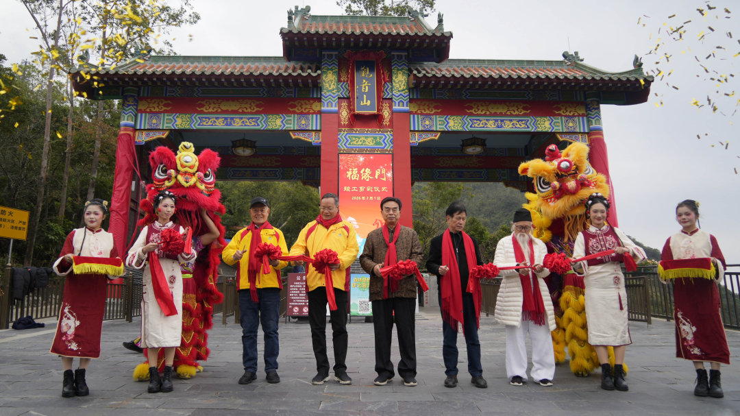 据了解,为迎接丙午马年,东莞观音山于2025年12月启动“观音山杯”春联征集活动,面向全国为观音山门楼和新落成的福缘门征集春联,其中仅门楼春联就收到对句来稿12692副,参与热度空前。经过专业评选,江苏南京史凤鸣创作的门楼下联、山东淄博王云珠创作的福缘门春联“万马争春,文化名山来就好;八仙送福,姻缘美梦定能圆”双双折桂,斩获“金马”奖。