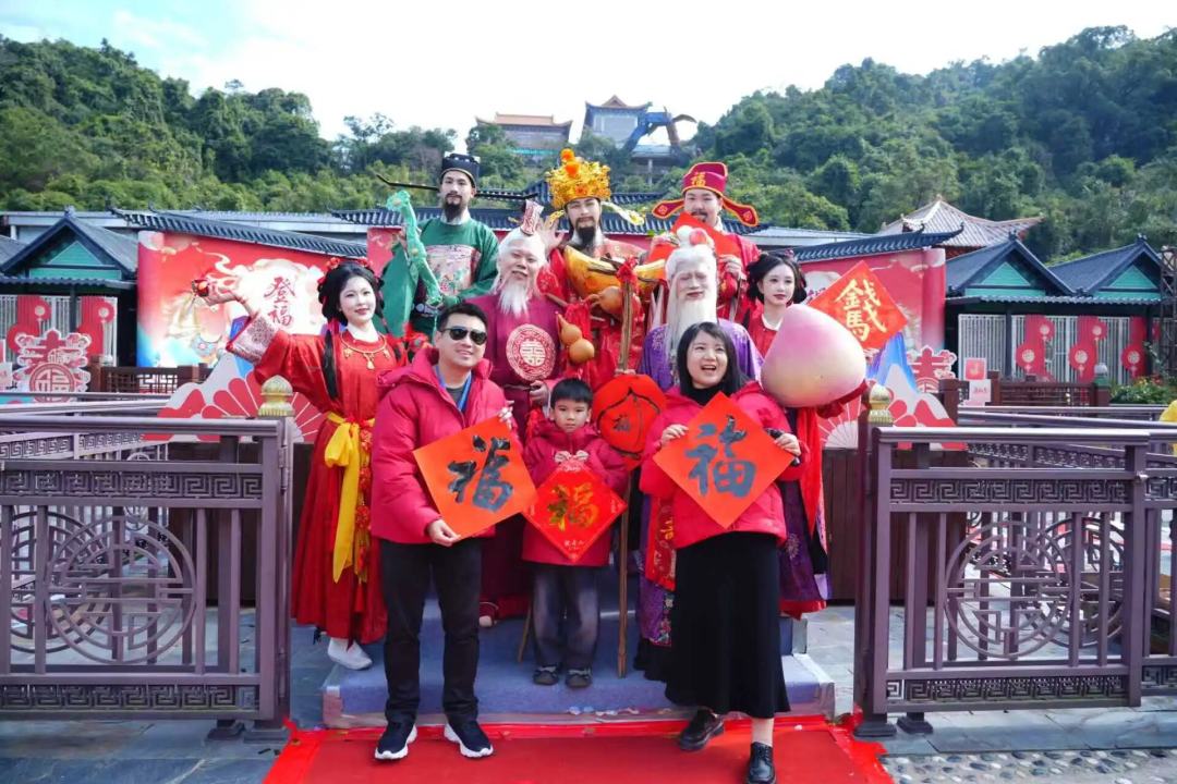 除了挥春送福等活动,东莞观音山还推出了“五福贺新春”系列活动,该活动将贯穿整个春节假期,直至元宵佳节,为市民游客打造丰富的新春出游体验,让福山的福气陪伴市民度过整个新春。活动现场,“福禄寿喜财”五福NPC天团惊喜亮相,福星手持观音山定制的马年福字贴,免费赠予游客;禄星持“如意”现身,与游客互动送上升职加薪的美好祝愿;寿星公捧大寿桃,为大家送上健康长寿的祝福;喜神为游客系上吉祥红绳,寓意幸福美满;财神抱着金元宝与市民合影互动,讨个财源广进的好彩头。