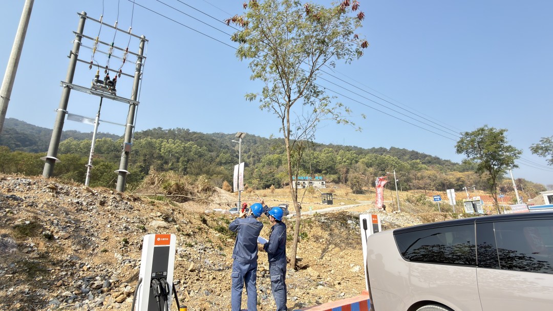 南方电网广东佛山三水供电局南山供电所工作人员对浮日蓝矿景区开展用电检查,确保用户在不断扩大生产经营范围的同时,用电安全可靠。