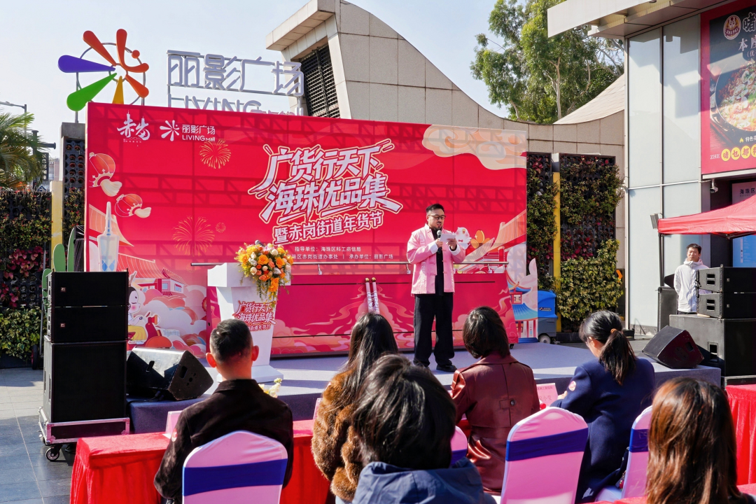 2026年2月2日上午,“广货行天下·海珠优品集”暨赤岗街道年货节在广州市海珠区丽影广场西区拉开帷幕。本次活动在海珠区科工商信局指导下,由赤岗街道办事处主办,广东丽影商业有限公司承办,旨在为区内优质企业搭建高效展销平台,集中推介“海珠优品”,为市民带来一场融合传统与创新、品质与实惠的新春消费盛宴。