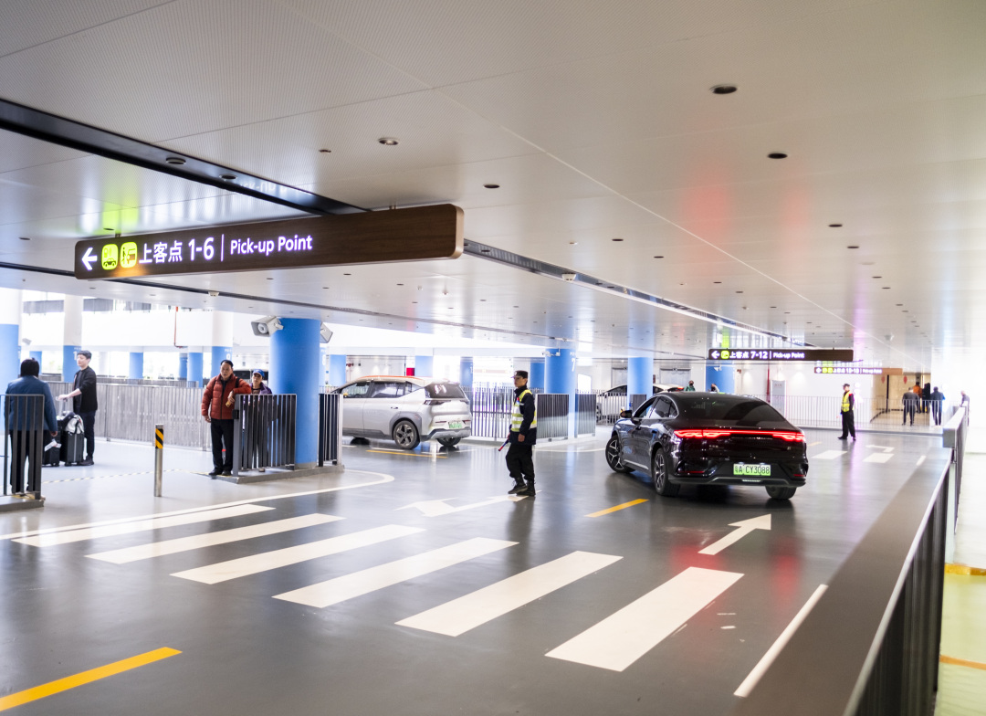 出发层车道边即停即走,“只下不上”,需停放私家车的旅客,请前往停车场。