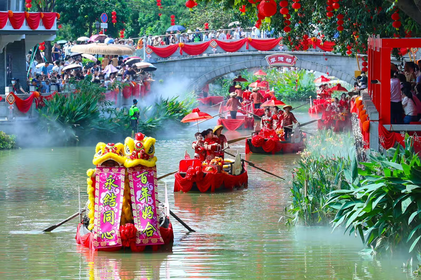 在这里,500米岭南风情街、1895米濠涌河道与20多亩东涌湖串联成景,岸边当地百姓土特产的叫卖声、婚俗馆抛接绣球的喝彩声与清月嘹亮的咸水歌,组成了水乡生机勃勃的生活景象。