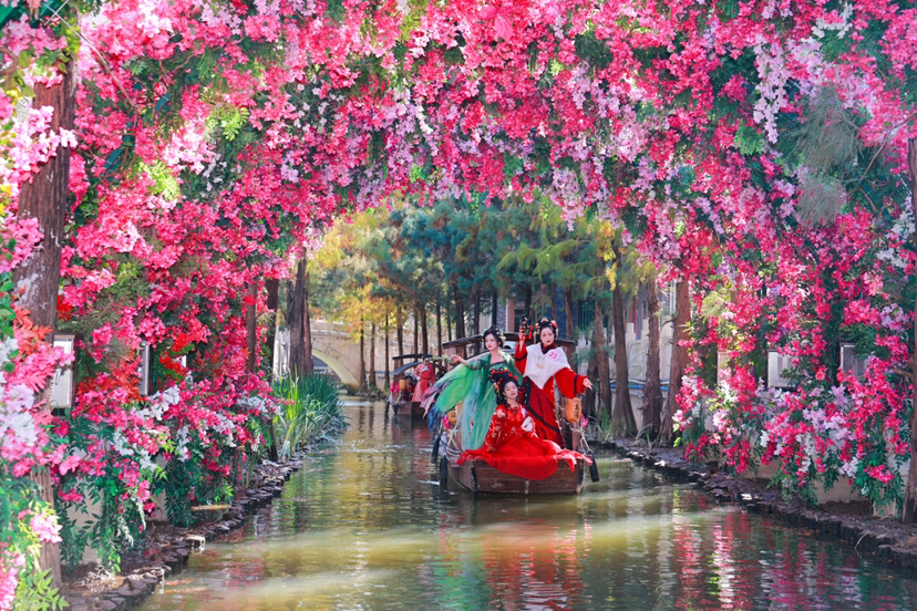 东涌镇马克村的紫花风铃早已成为远近闻名的打卡点,如今村里的桥底空间被改造为口袋公园,也成为新晋休闲打卡地。马克村作为省文化和旅游特色村、省“美丽庭院”特色村,通过“一村一策”培育特色产业,村集体收入稳步增长。官坦农业公园美不胜收,“少女塔”和“东涌之眼”造型独特,夏天向日葵、冬天七彩油菜花盛放,化身人人向往的花海,高峰期每天吸引4万—5万人前来打卡。东涌里水乡集体婚礼已举办七届,水上T台秀、实景剧目《水乡情画》等活动让传统文化焕发新生,带动周边村民创业就业。
