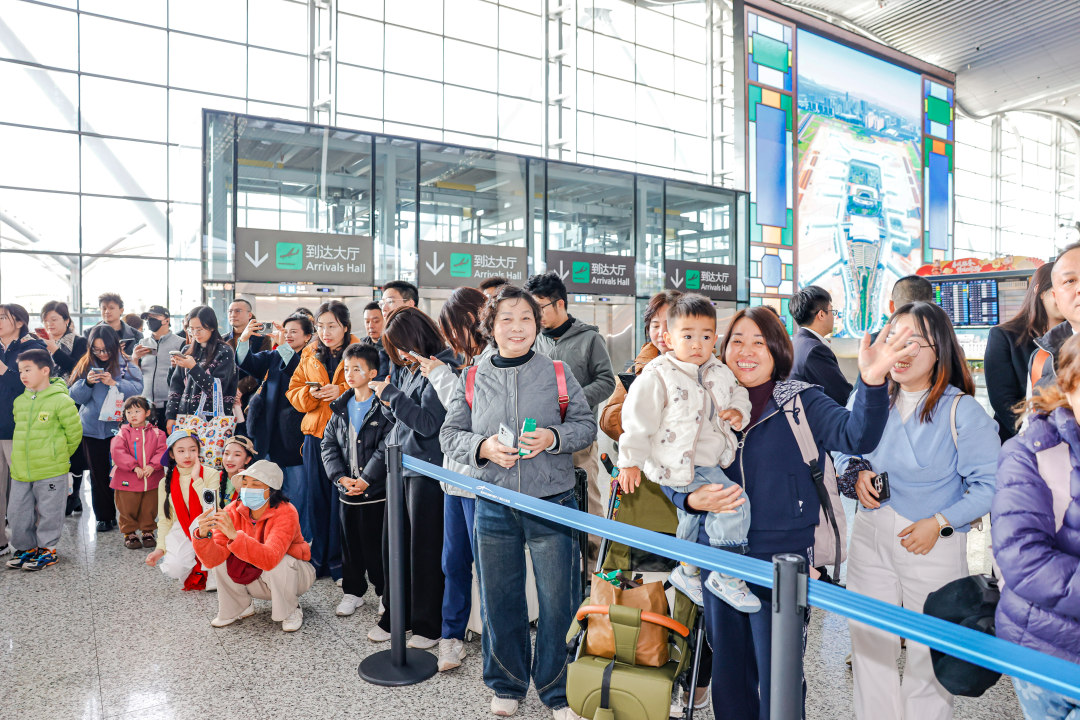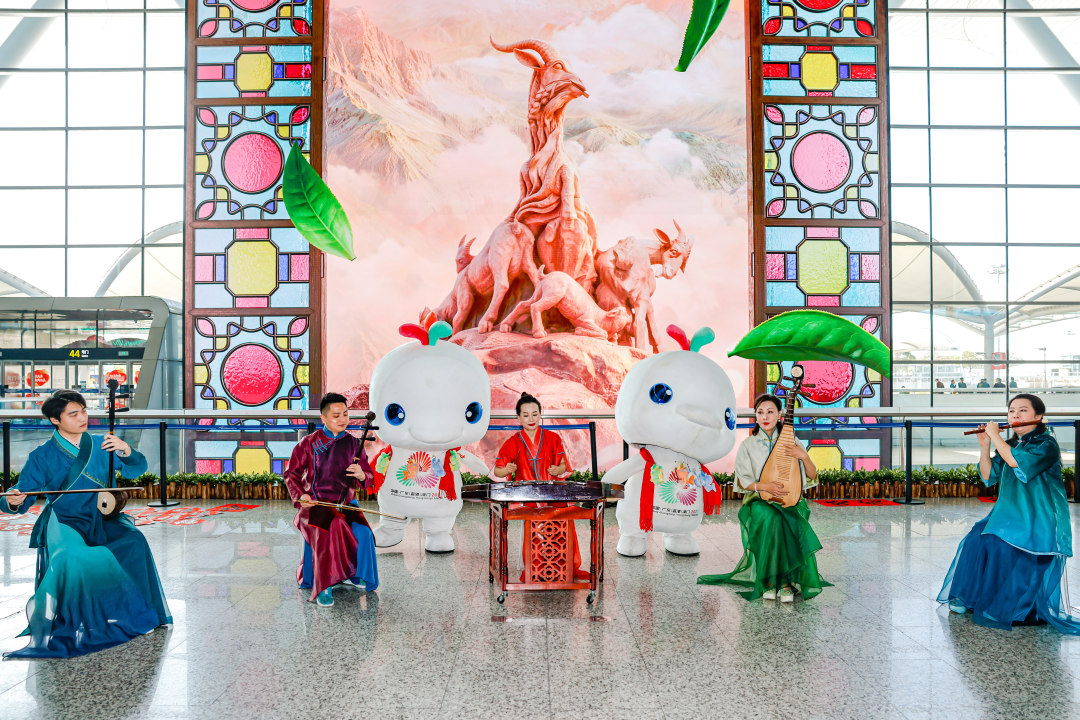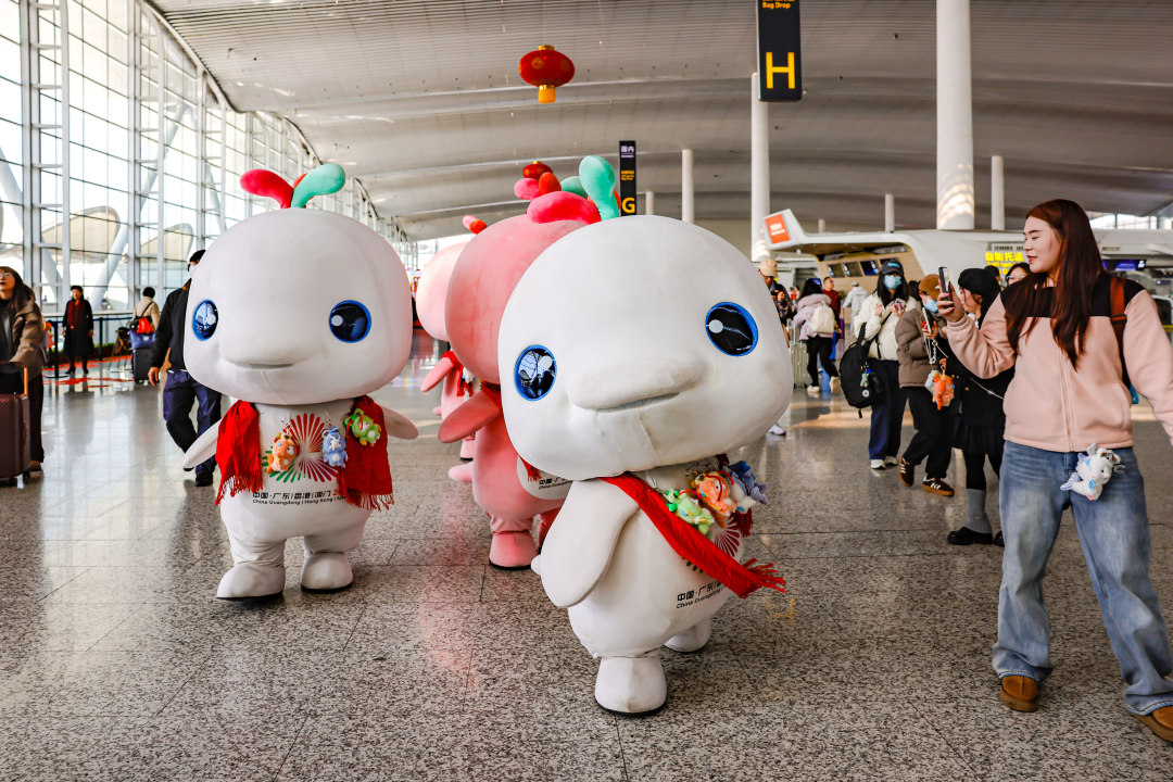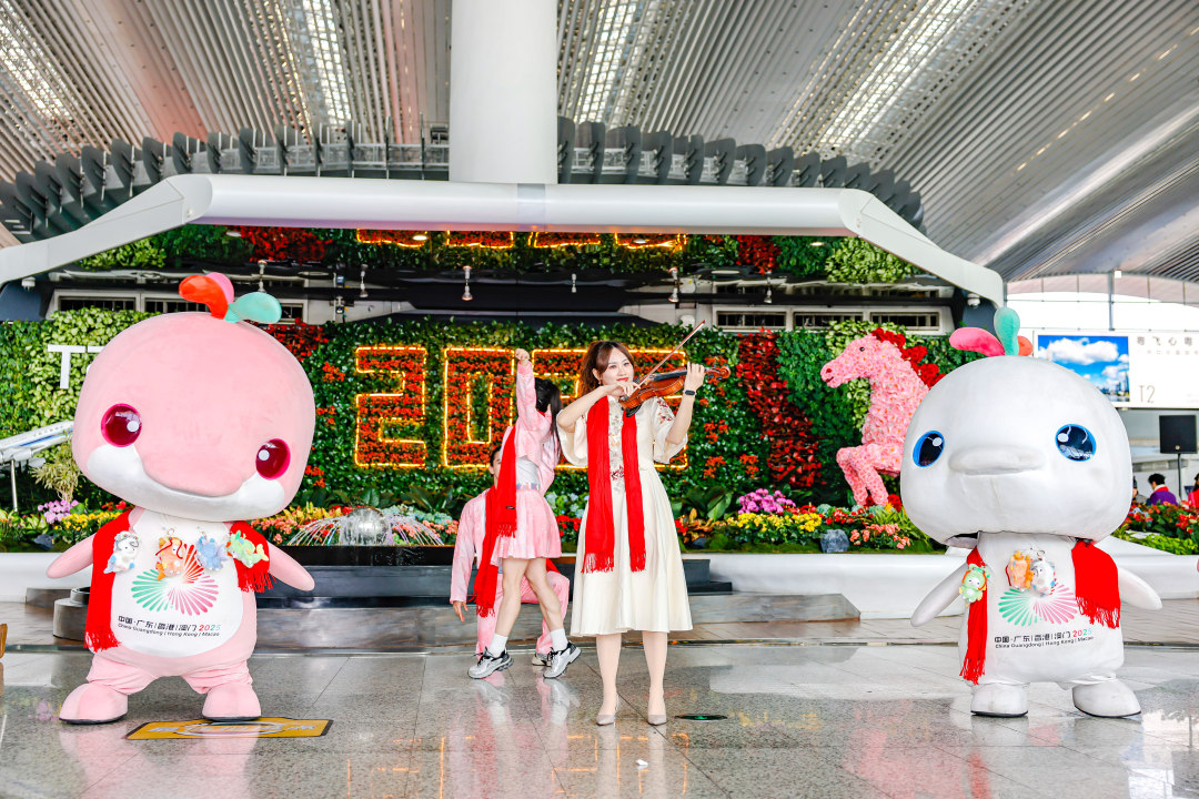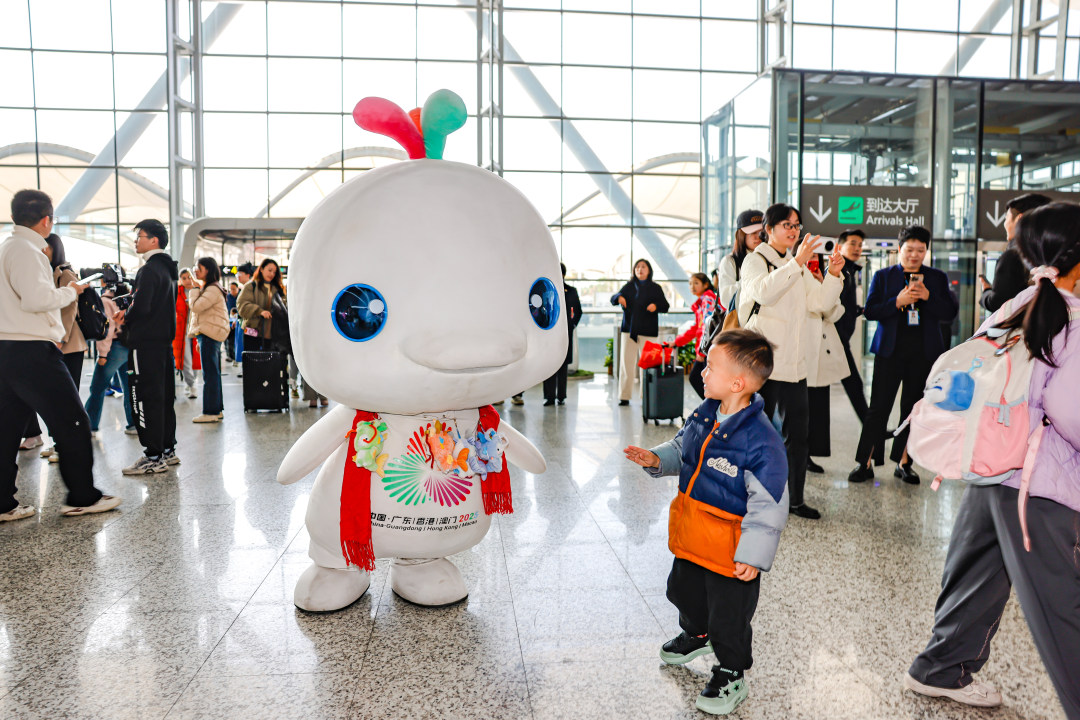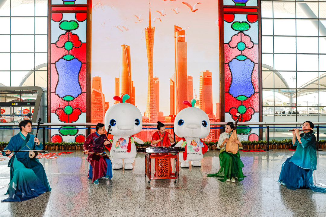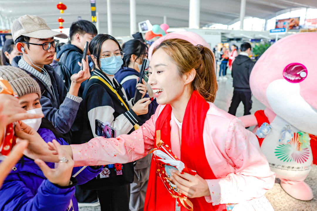 2月2日,春运启动首日,一场融合“文艺赋美城市·广货行天下·暖心春运”三大主题的新春快闪在广州白云国际机场T2航站楼欢乐上演。“顶流萌宠”大湾鸡惊喜亮相,与广州市属文艺院团的艺术家共同带来一场兼具岭南韵味与时代气息的文艺演出,为往来旅客献上一份独特的“广式文化年礼”,将广州这座城市的温暖,传递给每一位奔赴团圆的人。