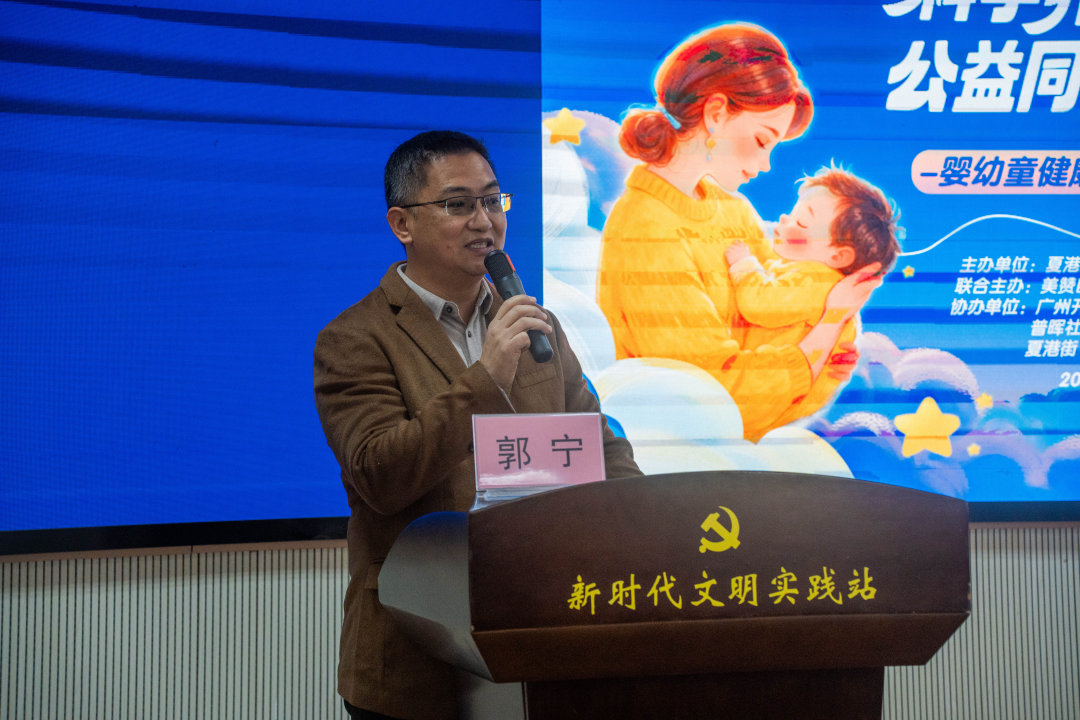 活动现场,郭宁在致辞中强调,此次活动是街道深化民生服务、构建生育友好型社区的重要实践,并围绕三大核心维度擘画政企社协同发展蓝图。其一,深化公益联动,彰显企业担当。自2025年起,美赞臣中国便持续深耕社区公益,不仅为特殊困难儿童家庭捐赠爱心奶粉,更将关爱延伸至银发群体,今年再度坚守公益初心,为困境儿童提供精准营养支持,用实际行动诠释企业社会责任。街道期待以此次活动为纽带,进一步深化与美赞臣中国等优质企业的战略合作,共同构建覆盖全周期的科学育儿社区服务体系,让生育友好理念落地生根。其二,聚焦老幼共融,升级惠民阵地。2025年,夏港街道完成普晖老幼共融阵地升级改造,新增160平方米普惠托育空间,为老年人活动区域增设便民电梯,创新打造“医养结合+代际互动”双轨运营模式——既依托专业医疗机构为老年人提供健康评估、康复理疗等精细化服务,又持续扩大普惠托育覆盖面,切实减轻家庭育儿负担,让老幼群体共享优质公共服务。其三,强化医育融合,普及健康素养。街道将以羊城托育服务点、普晖社区颐康站为核心载体,联动广州开发区医院等专业医疗力量,常态化开展医育结合讲座、健康义诊等惠民活动,将婴幼儿科学养育、老年人健康养生等实用知识送到群众“家门口”,全面提升老幼群体健康防护能力。