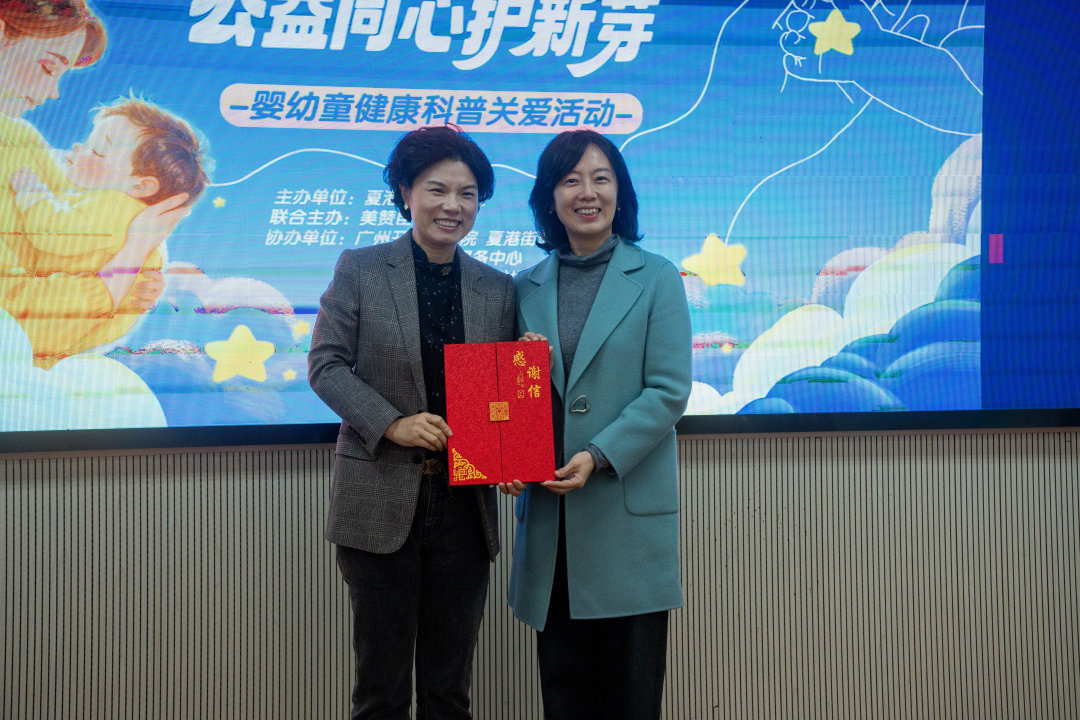 与此同时,普晖社区一楼羊城托育服务点同步举行爱心捐赠仪式,参加活动的家庭代表向美赞臣中国赠送锦旗,感谢企业的暖心帮扶。领导嘉宾为困难儿童家庭逐一派发爱心奶粉,镜头下,一张张笑脸定格政企同心、共护新芽的温暖瞬间,让公益的力量在冬日里持续传递。公益之路,行则将至;爱心之举,恒则方成。夏港街道相关负责人表示,未来将以此次活动为重要契机,进一步深化与辖区企业、医疗机构的多方联动,持续拓展公益服务边界、丰富服务内容,不断织密织牢“老幼共融”服务保障网,以更优质、更精准、更暖心的民生服务,全力守护辖区老年人的幸福晚年与儿童的健康童年,让社区更有温度、民生更有质感。