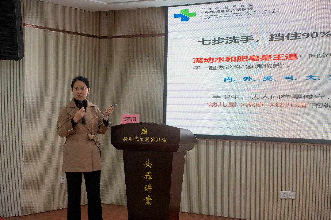 仪式过后,强瑞雪带来了一场干货满满的“儿童常见病预防与家庭护理”专题讲座。聚焦儿童呼吸道感染、胃肠道疾病、过敏性疾病三大高发品类,细致拆解普通感冒与流感的症状差异,提炼手足口病“发烧、喉咙痛、手脚臀出疹、口腔疱疹”的识别四要素,详解秋季腹泻防脱水的关键举措。同时,她为家长们构筑起“营养、睡眠、疫苗”三道健康防线,强调均衡饮食、规律作息与科学接种疫苗的重要性,并针对家长普遍关心的发烧护理误区、儿童用药安全等问题逐一答疑解惑,引导家长以科学方法应对儿童常见疾病,从容守护孩子健康成长。讲座结束后,趣味盎然的有奖问答环节点燃现场氛围,家长们积极抢答、互动热烈,在轻松氛围中巩固健康知识。