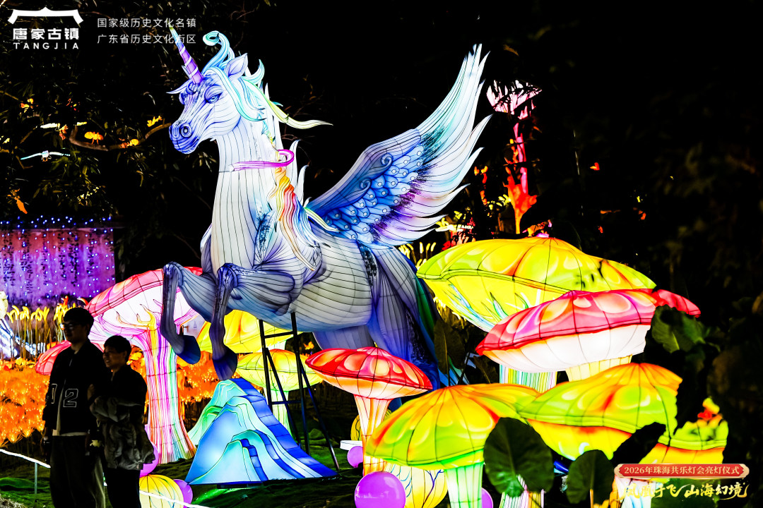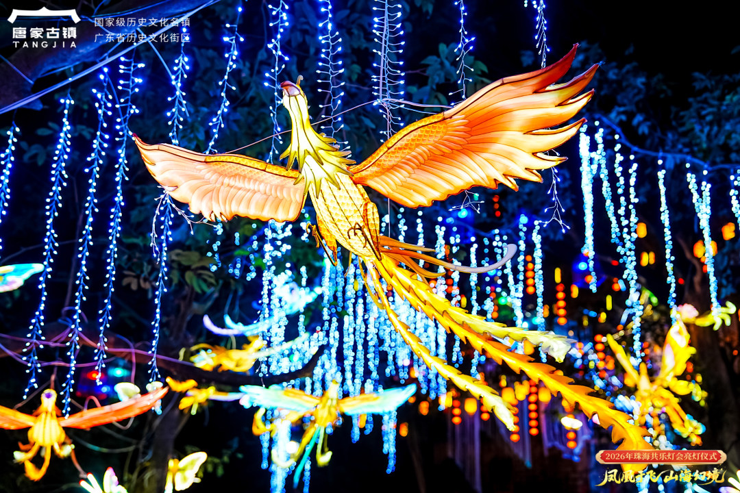 2026年珠海唐家古镇共乐灯会结合百年共乐园首开秘境区,以“凤凰于飞・山海幻境”为主题,将非遗技艺与年节文化深度交融。灯会特邀自贡非遗彩灯匠人,以千年“天下第一灯”技艺为骨架,经装灯、裱糊、彩绘等繁复工序,让《山海经》中的祥瑞神兽从古籍中走出。在这里,学子们可与《鸾鸟载文》对望、在《九尾呈祥》前祈福、向《白泽晓梦》沾智慧灵气、于《夫诸踏波》中求澄澈安宁、同《天马飞驰》祈龙马精神,凝《凤凰仙子》衔火纳吉,更可在祈福灵椿与财神树上系上红丝带,亲手写下对新年的美好祝福。