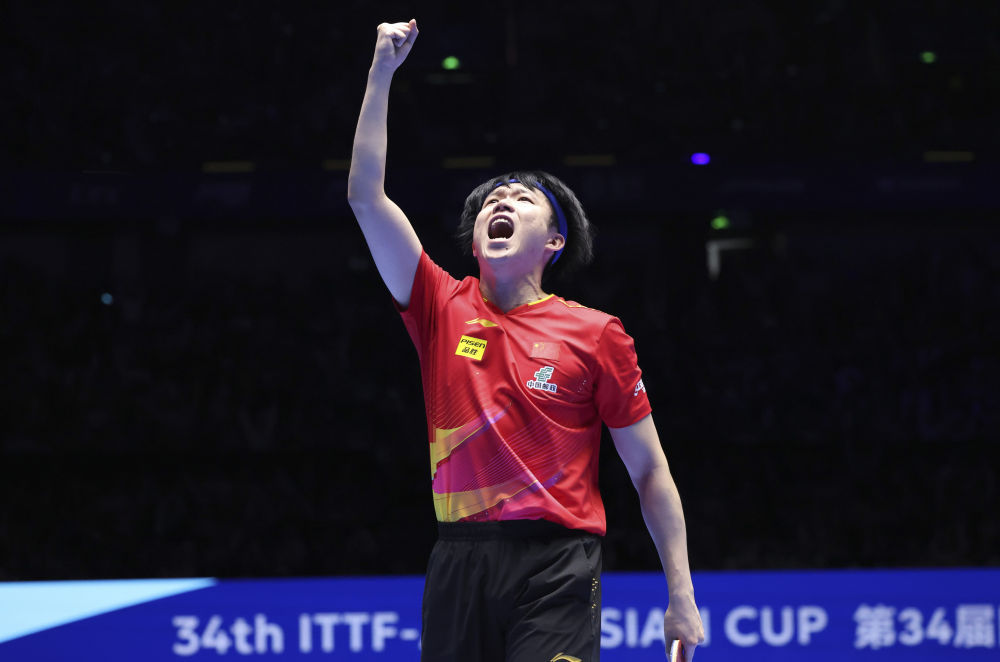2025年2月23日,中国选手王楚钦在广东深圳举行的第34届国际乒联—亚乒联盟亚洲杯男子单打决赛中。