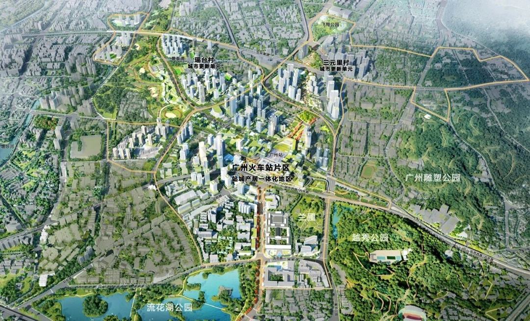 广州火车站片区站城产居一体化地区示意图
