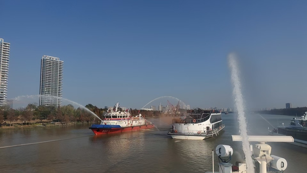 演练现场如何凝聚多方合力打通“水上生命通道”?演练中,在海事部门统一协调下,各参演单位构建起“水上命运共同体”:公安特警冲锋舟迅速展开落水人员搜救,凭借专业装备和娴熟技能实现快速精准打捞;消防船舶携带专业灭火设备全力扑救船舶火情,实施高效灭火冷却作业,遏制险情扩大;三龙湾游船公司同步开展乘客转移安置,确保受困人员得到妥善处置。各环节紧密衔接、无缝配合,形成分工明确、协同作战的强大救援合力。