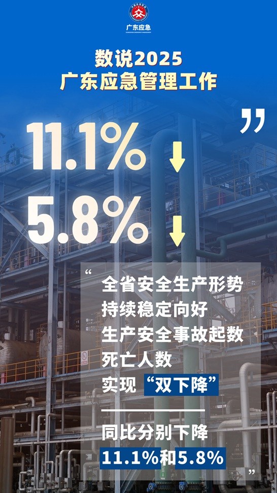 2月2日上午,全省应急管理工作会议召开。会议认真总结2025年和“十四五”时期广东应急管理工作,分析面临形势,明确“十五五”时期总体要求,部署2026年重点任务,动员全省应急管理系统乘势而上、接续奋斗,不断开创应急管理事业高质量发展新局面。2025年,全省生产安全事故起数和死亡人数同比下降11.1%、5.8%,防台风实现“零伤亡”目标,最大程度减少灾害损失,未发生重特大森林火灾,为全省经济社会发展提供了安全稳定环境。