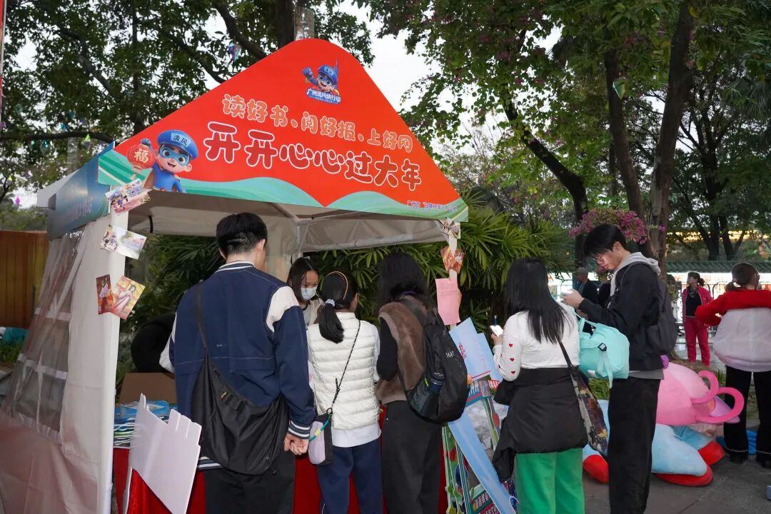 小e了解到,在1月30日至3月8日灯会期间,越秀公园清风侠漫画时空隧道在每晚亮灯时段同步开放。隧道两侧以生动的环保漫画,讲述守护网络清朗、倡导绿色阅读的故事。除此之外,动漫星光大道周边同步开展多元文化活动,可供市民游客参与体验。其中,广州新华集团设立公益摊位,开展旧书置换活动,传递绿色阅读理念。