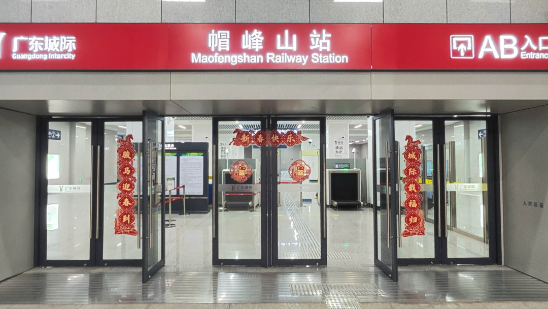 帽峰山站的马年主题春联与“YOYO”窗花图。