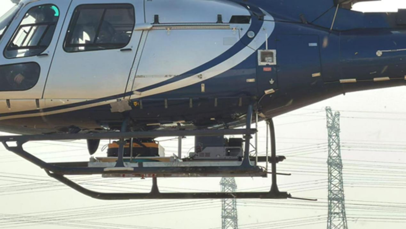 搭载了倾斜摄影相机与激光雷达的直升机作业画面