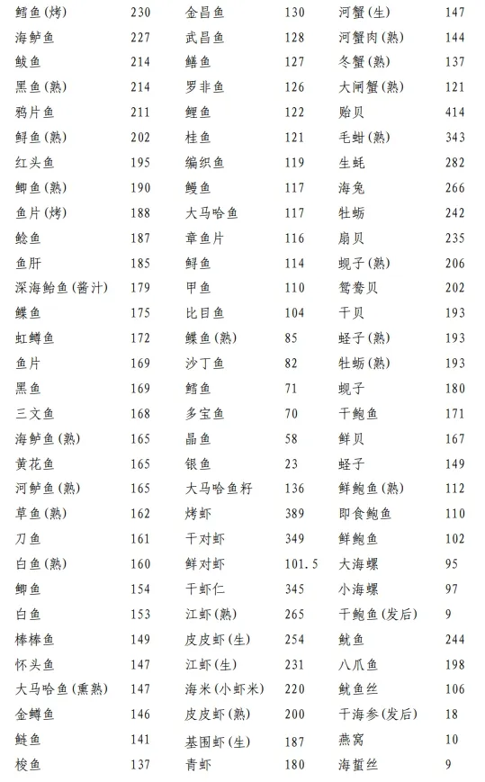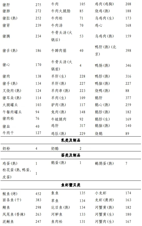 附:常见食物嘌呤含量表