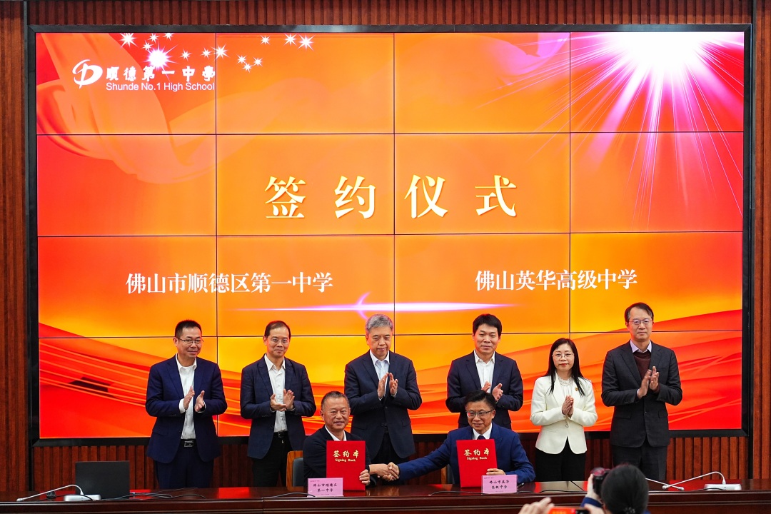 顺德一中教育集团成员校再“+1”!今日,佛山市英华高级中学正式加入顺德第一中学教育集团,这场备受瞩目的“牵手”,标志着双方正式共同开启教育资源共建共享的新篇章。
