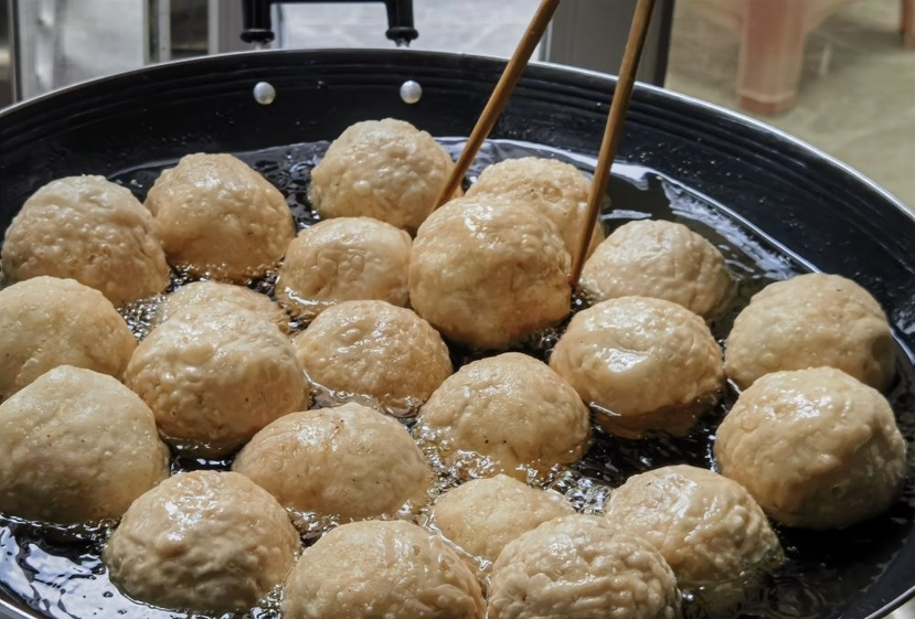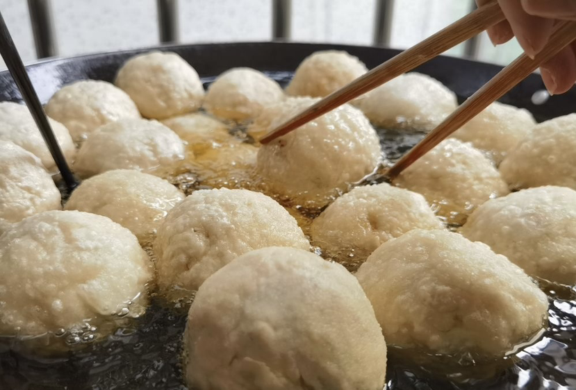 刚下镬的煎堆在热油中