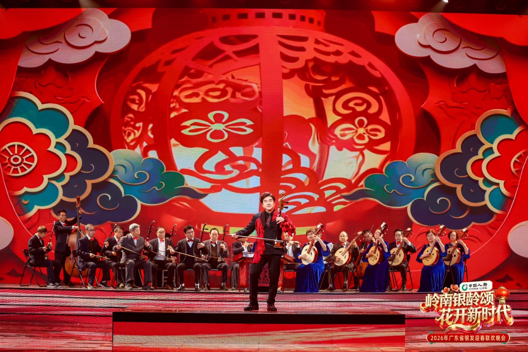 第三篇章聚焦银龄群体在社会参与中的价值实现。小品《此心安处》讲述一群“老漂”志愿者在异乡扎根服务、找到归属的温馨故事;互动环节特邀“秀全大妈”群体代表分享善行义举,弘扬奉献互助的正能量;国乐演奏《万马奔腾》《步步高》由二胡表演艺术家陈军领衔献演,不仅奏响银发一代奋进新征程的时代心声,更为观众送上诚挚热烈的新春祝福。
