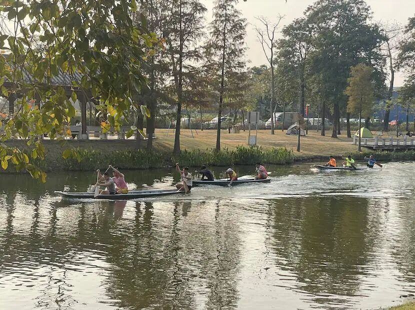 偶尔有几条龙舟从水面划过,