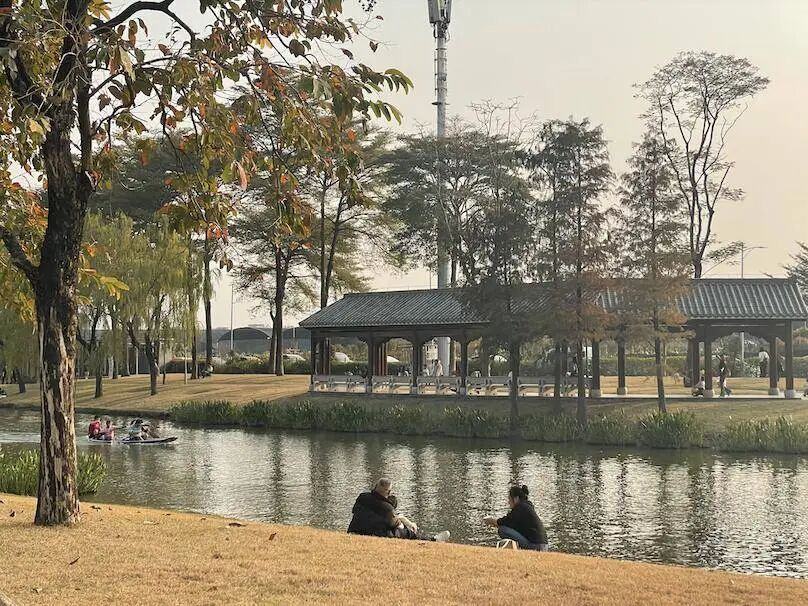 广佛线龙溪站A出口出来后,地图上搜索“大沙河湿地公园”,步行250米即可到达。